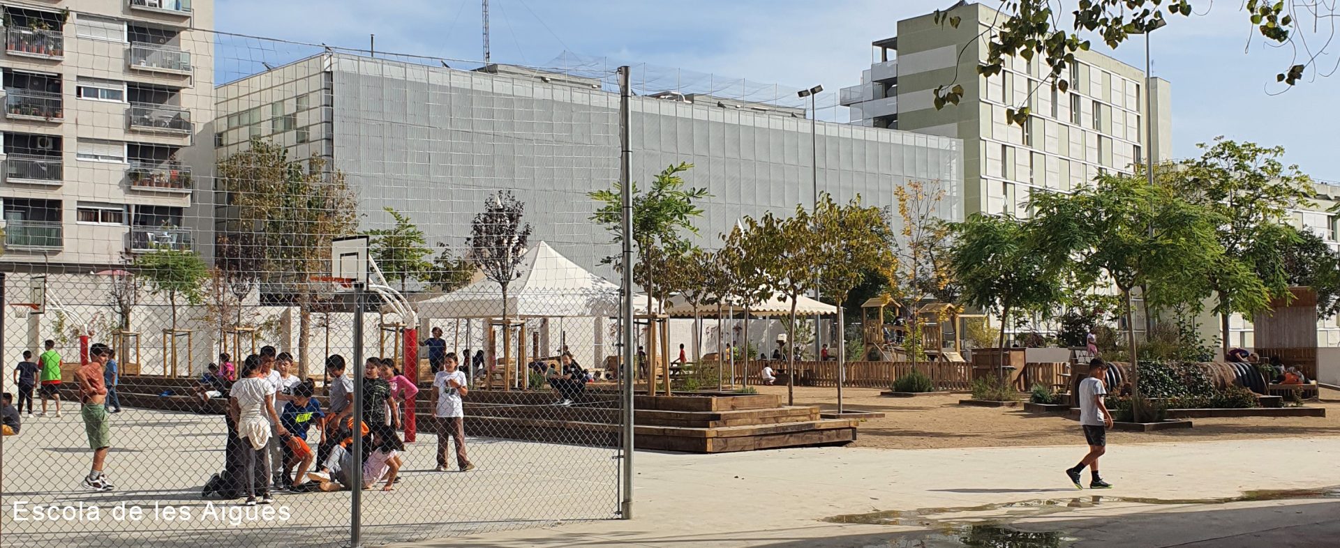 Dentro del programa DECIDIM Barcelona, a través de un proceso participativo, las escuelas han hecho previamente un proceso participativo, para proponer intervenciones. BTarquitectes colabora en este programa, con la transformación de los patios de las Escuelas de las Aigües y la Farigola del Clot, en jardines lleno de verde y elementos naturales, que representan un pulmón verde por los pequeños y por el barrio, adaptando el patio a las nuevas necesidades pedagógicas y climáticas, incorporando vegetación, sombra y agua.